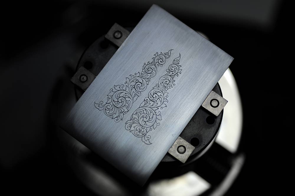 Outline is engraved...I don't (never!!!) use scroll template, I draw free hand.