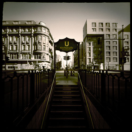 Camera: Zero 2000 Film: 4s exposure on kodak plus-x film " Checkpoint Charlie - Berlin " 2007