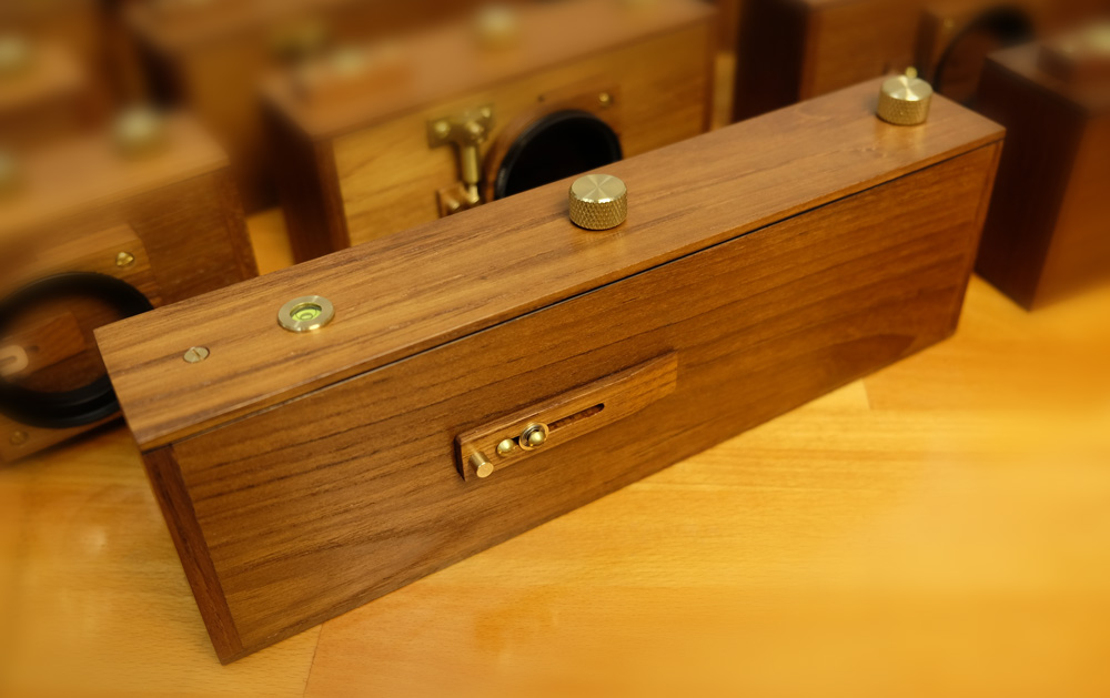 All new design with new features, not just an enlargement or a copy of our existing 45 camera system. Again in multi-format and with pinhole and zone plate interchangeable design. Brand new and more durable turret made of brass. No rubber band, more style for you to choose to meet your taste, oil wax finishing and more....