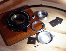 | In order to use different focal length zone plate at the field, I designed an adaptor which hold the zone plate and the zone plate can be replaced easily. The adaptor is mount on a Copal No. 0 shutter for actual shutter speed. |