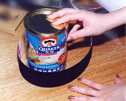 | 1. Cut a piece of felt paper (or other paper) about 1/3 the height of the tin, and with a length which is about 2cm longer than the diameter of the tin. |