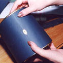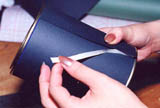 | 3. First fix one edge of the fancy paper to the tin by removing the backing from one side of the double-sided adhesive tape, and then along the other edge. |
