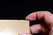 | 3. All film have a notch at one corner. Use your right hand to find the corner (with the notch) and than hold the film as the below photo, the film emulsion side is now facing you. The film emulsion side is always facing the lens or the pinhole (unless you want to do something very special!) |