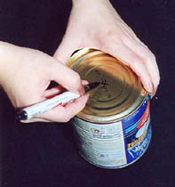 | 1. Made a mark at the center of the tin. |