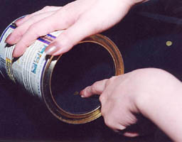 | You can use white glue or yellow glue to stick the pinhole to the tin. |