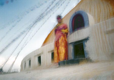 | a hindu girl in front of the bodnath-stupa in Kathmandu/Nepal Feb2002 | ||